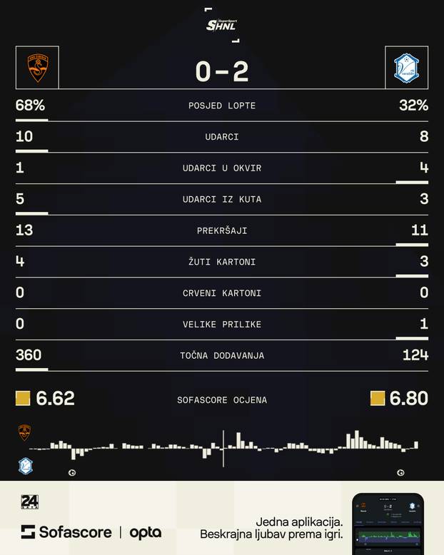 Ništa se značajnije potom nije događalo do 68. minute kada je Poldrugač lukavo pokušao iz kornera zaprijetiti domaćinu, ali je Filipović ipak održao šibenski zaostatak od jednog pogotka.