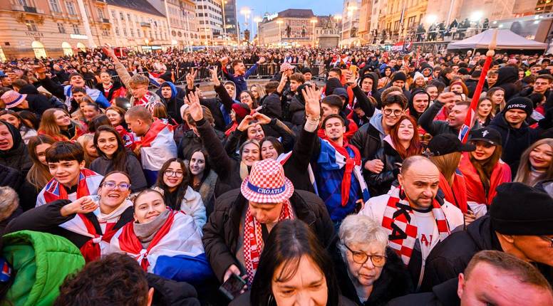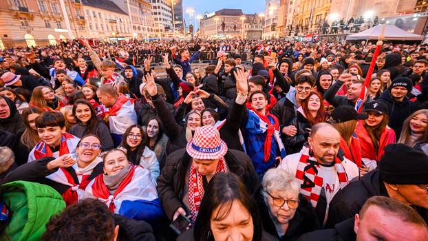 ZAGREB - Na pozornicu na Trgu bana Josipa Jelačića prvi su izašli Zaprešić Boysi i otpjevali "Igraj moja Hrvatska", "Osam slova" i "Neopisivo". Okupljeni navijači u jedan su glas pjevali sve pjesme.