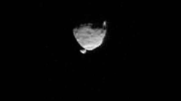 Komentari 3Ovaj video nastao je od niza fotografija koje je snimio Curiosity početkom mjeseca, a pokazuju kako je veći Fobos prošao ispred manjeg Marsova satelita Demiosa