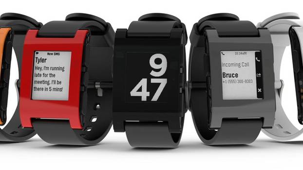 Pebble sat poseban je po tome što se proslavio kao najuspješniji projekt na Kickstarteru gdje su i prije početka proizvodnje skupili više od 10 milijuna dolara za projekt. Sat koristi elektroničku tintu za prikaz te tako troši malo struje. Spaja se s raznim aplikacijama na telefonu te prikazuje obavijesti i poruke s Twittera.