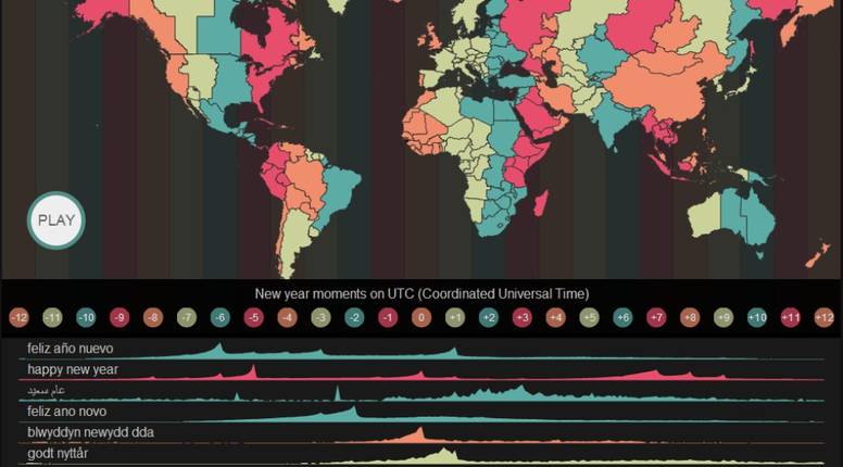 U animaciji možete vidjeti kako su se širili slavlje i čestitke dok je u određenu vremensku zonu stigla Nova godina. Možete vidjeti i kakve su se čestitke slale