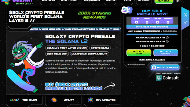 S više od 19,2 milijuna USD već prikupljenih, pretprodaja Solaxyja nastavlja privlačiti velik interes investitora. Kako projekt napreduje, očekuje se povećanje cijene $SOLX u nadolazećim fazama, što pruža ranim sudionicima priliku da osiguraju tokene po trenutnoj cijeni od 0,00163 USD prije daljnjih poskupljenja.
