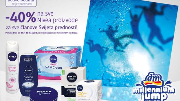Ova krema karakteristična mirisa i pakiranja, već je više od stotinu godina sastavni dio kozmetičkih torbica, a popust na sve NIVEA proizvode, članovi Svijeta prednosti mogu ostvariti u svim dm prodavaonicama u razdoblju od 23. do 26. srpnja 2015.